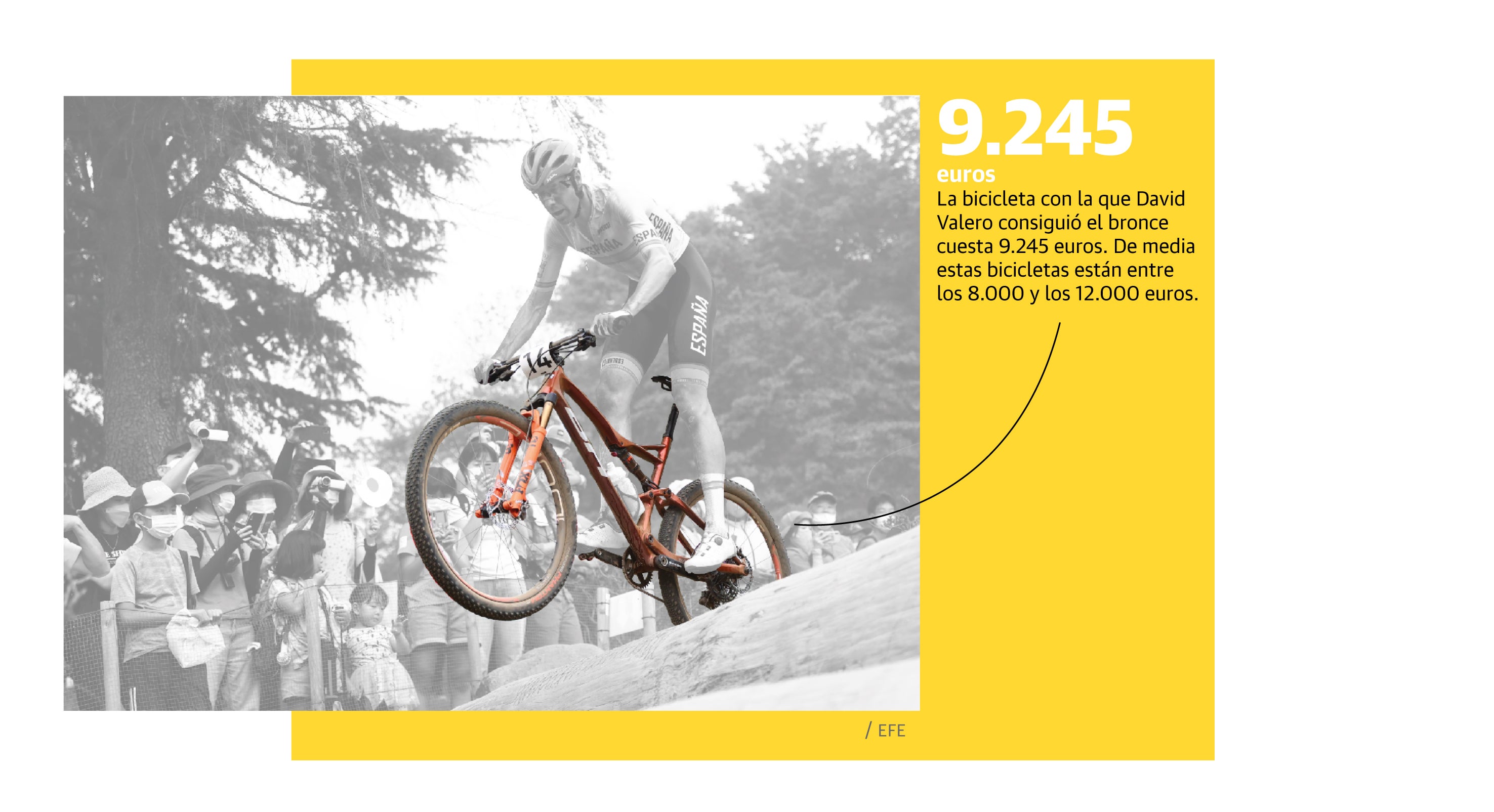Eso sí, una medalla de bronce, en estos términos, cuesta 9.245 euros. Es el valor aproximado de mercado de la bicicleta con la que entró en tercera posición David Valero en la prueba masculina de ciclismo de montaña en Tokio. La de la deportista Rocío García, con diferente cuadro que la de su compañero de equipo en el BH Templo Cafés y diferente montaje, vale 7.845 euros.