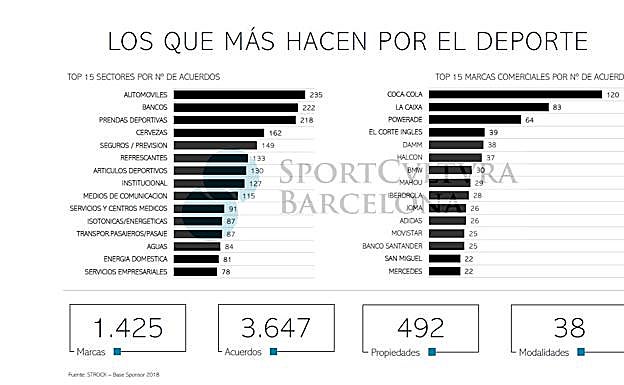 El pasado año se generó una inversión en patrocinio deportivo de 369 millones de euros, muy lejos de los niveles de 2007 (623 millones), pero superior a la de los últimos años (con sólo 315 millones en 2013). En el 'top 10' de «los que más hacen por el deporte» figuran también el sector de artículos deportivos, el institucional, el de los medios de comunicación y el de servicios y centros médicos.