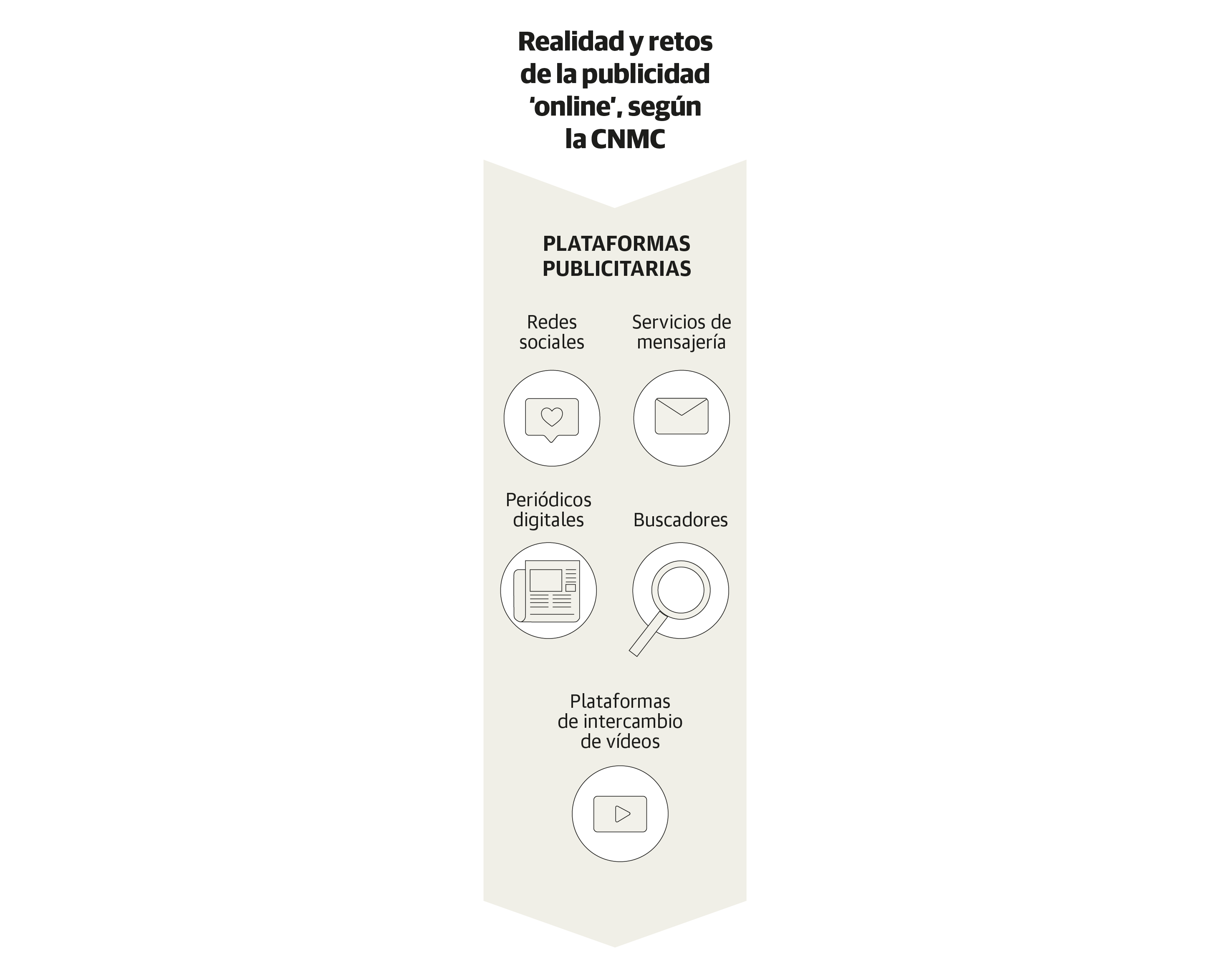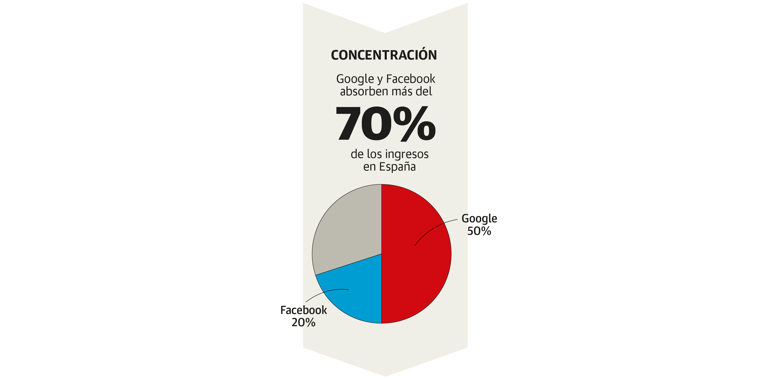 El mercado de la publicidad en Internet está concentrado en unas pocas manos. En dos, concretamente:las de Google y Facebook. Entre ambas compañías acaparan el 70% de los ingresos que generó este negocio en España en 2019. Así lo pone de relieve el primer informe de la historia sobre este sector, elaborado durante más de dos años y publicado ahora por la Comisión Nacional de los Mercados y la Competencia (CNMC).