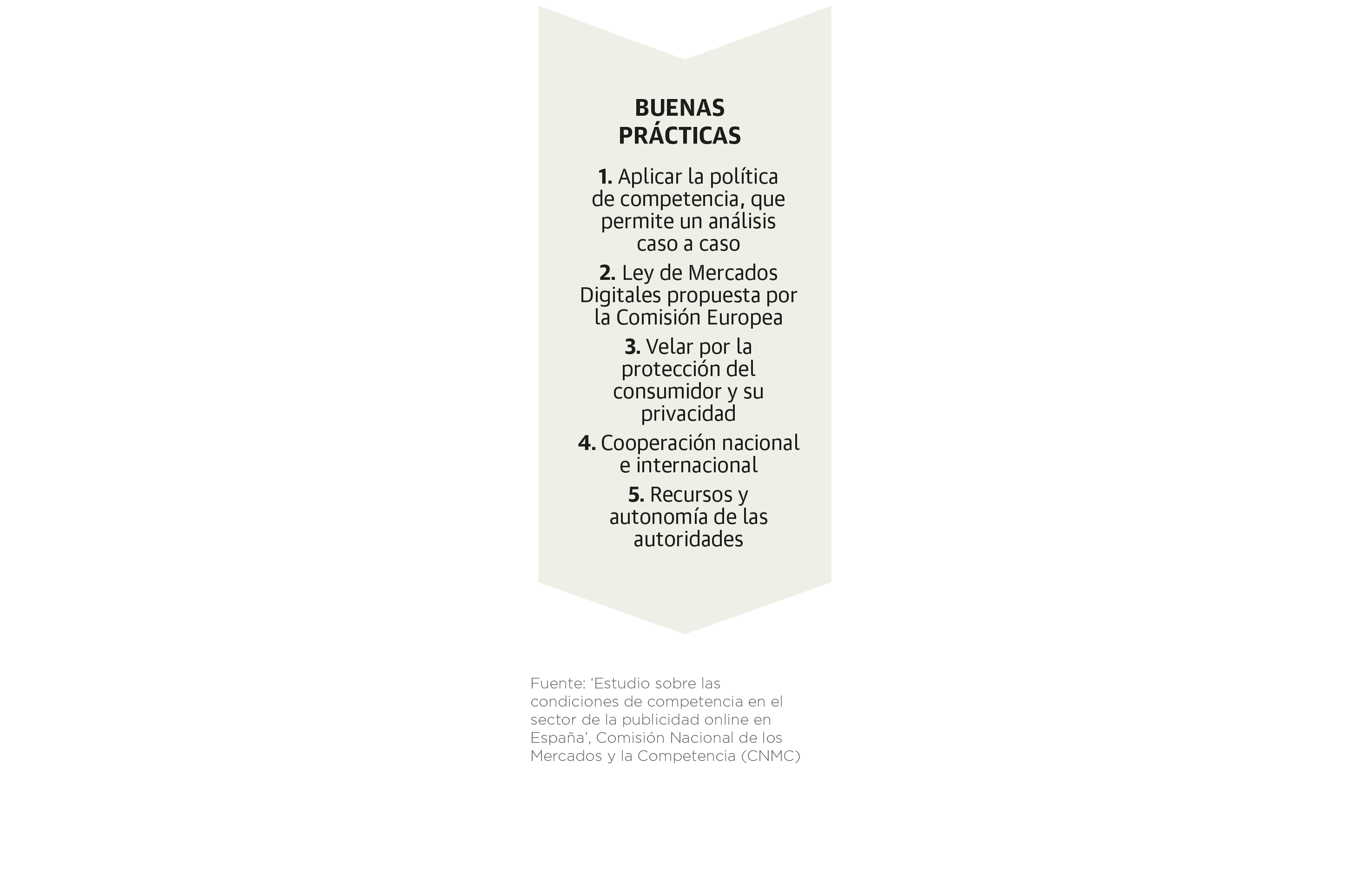 Desde Competencia confían en el desarrollo del proyecto de ley de mercados digitales que está en elaboración a nivel europeo para que se cree un marco supranacional que vigile estos mercados y dé herramientas adaptadas. Pero también admiten que las investigaciones en esta materia son «muy complejas» y ha recordado que hay investigaciones en marcha en distintos ámbitos sobre la publicidad en línea. De hecho, CEDRO (Centro Español de Derechos Reprográficos)denunció a Google ante la CNMC en junio por abuso de posición dominante en el mercado de la agregación de noticias y en el de la publicidad digital.