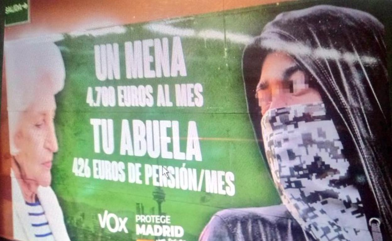 La Fiscalía de Madrid ha abierto diligencias de oficio para investigar la presunta comisión de un delito de odio por parte de Vox en un cartel electoral en el que compara las pensiones con el coste mensual destinado a los menores extranjeros no acompañados, han confirmado a Europa Press fuentes fiscales.