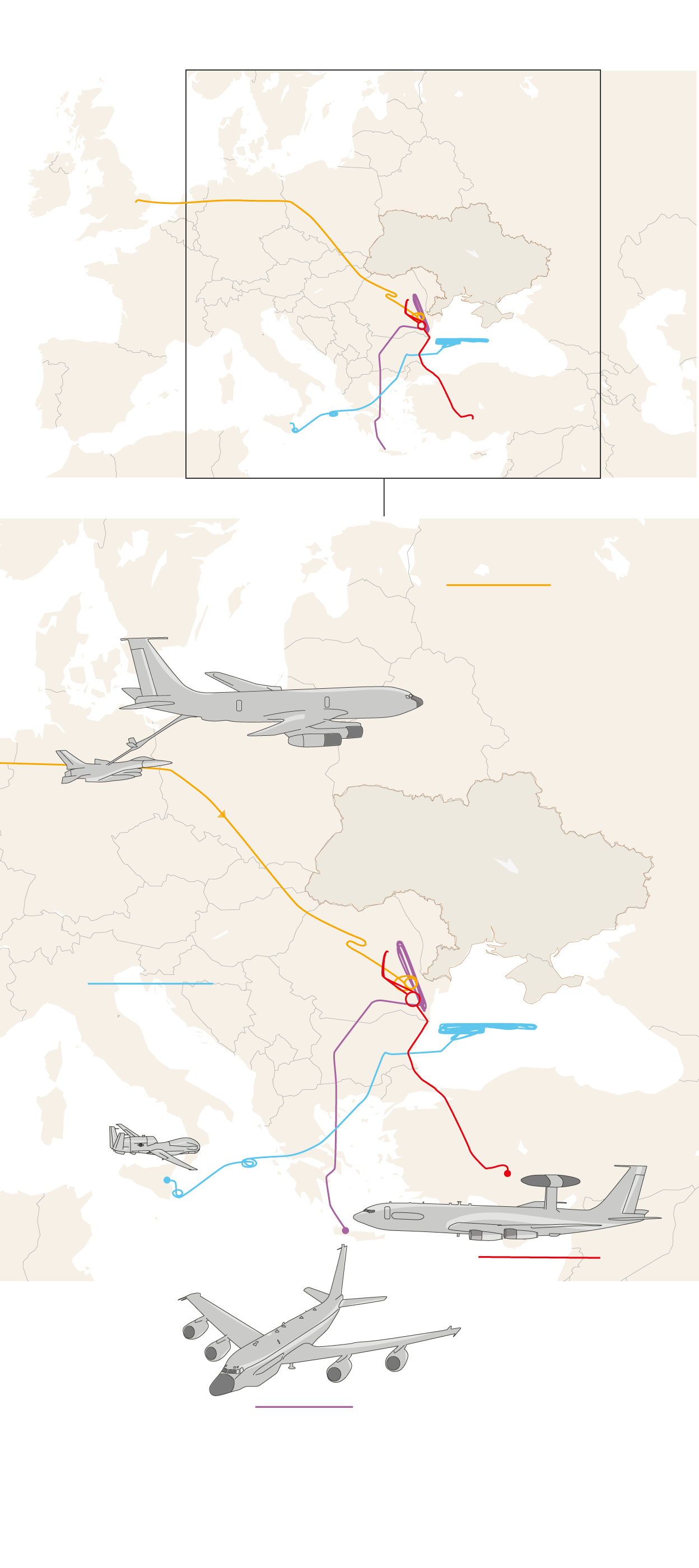 Desde el inicio de la invasión, las aeronaves de vigilancia de la OTAN se despliegan en la frontera sin ocultarse