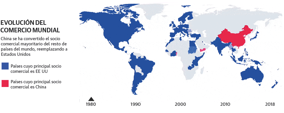 Ahora, la tortilla ha dado la vuelta. China es la segunda potencia mundial, la única capaz de poner en entredicho la hegemonía estadounidense con un claro liderazgo comercial y un creciente desarrollo tecnológico que se ha reflejado en el primer alunizaje en la cara oculta de la luna. Pekín también ha creado una red de países satélite, algunos ideológicamente cercanos y otros menos, que se extiende por todos los continentes. La diferencia estriba en que, en un mundo globalizado e interdependiente, su poder es muy superior al que nunca tuvo la URSS.