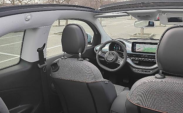 En el interior, la sensación es que hay mucho más espacio que en el 500 térmico, gracias a la ausencia de palanca de transmisión y de freno de mano (eléctrico también). La transmisión se distribuye en una pulcra botonera bajo la pantalla central de infoentretenimiento, que es de buen tamaño (10,25» en nuestra unidad de acabado Icon, el más refinado de una gama compuesta también por el Action de acceso y el intermedio Passion) y de excelente calidad de visualización, como también lo es el cuadro de instrumentación frente al conductor, que ofrece un amplio abanico de visualizaciones distintas (entre ellas la opción de mostrar la navegación). Entre ambas hay también una base de carga inalámbrica para el smartphone y los controles de la climatización Y, aunque hay plástico duro en las puertas, la sensación general es, de nuevo, de un gran salto en calidad, con todo muy bien ajustado.