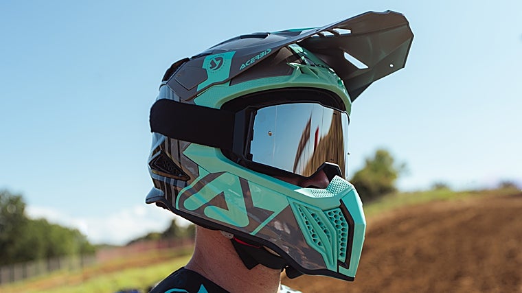 El interior es totalmente desmontable, hipoalergénico, transpirable y lavable. Las almohadillas cuentan con un sistema de fijación que facilita su extracción y tienen logotipos de silicona para indicar los puntos de desenganche. El casco también está equipado con el sistema Quick Release System, para una rápida extracción en caso de emergencia. Cuenta con 4 entradas de aire frontales y 6 extractores traseros. La visera se puede alargar mediante una extensión que se monta fácilmente con tornillos y que protege del sol, la lluvia y el barro. Lo que sitúa a este innovador casco en lo más alto de su categoría es su reducido peso, de solo 1150 g ± 50 g, lo que lo convierte en uno de los cascos más ligeros con certificación ECE 2206 del mercado. Precio: 499,95 €.