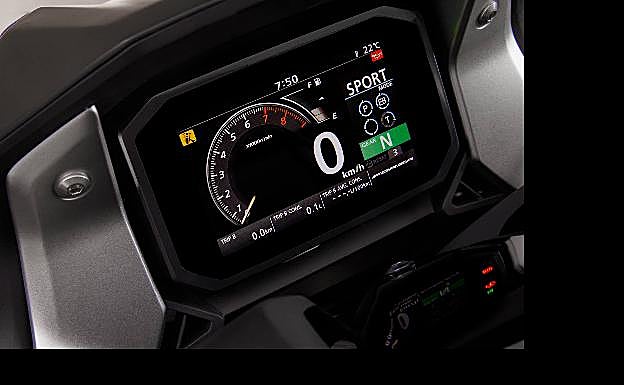 El cuadro de instrumentos, totalmente digital, dispone de una gran pantalla TFT de cinco pulgadas con mucha información al instante y cinco diseños diferenciados de información, además, de la nueva incorporación del sistema propio Smartphone Voice Control para conectar el móvil del conductor en marcha a través de Bluetooth. Las ordenes se reciben y se dan a través de la voz. También lleva de serie el Smart Key para no tener que insertar la llave en el vehículo para su puesta en marcha. Cómo no podía faltar en este tipo de vehículos incorpora un práctico freno de estacionamiento.