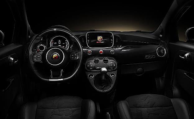 En el interior, el nuevo Abarth «Scorpionflage» viste asientos deportivos con tapicería de cuero negro y asiento trasero en material técnico para contener mejor el cuerpo durante la conducción más deportiva. En el asiento delantero el reposacabezas lleva bordados la palabra «Scorpioneoro» sobre la bandera italiana y el emblema de Abarth. Los nuevos asientos se combinan con el salpicadero Scorpion Black con detalles negros mate, y con la placa de oro en el túnel central y alfombrillas personalizadas.