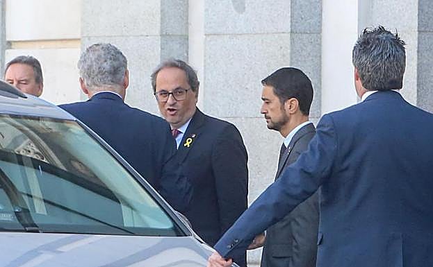 Los pasillos del Supremo dieron buena cuenta de que el independentismo está dividido. Los familiares de los acusados y el público, empezando por Quim Torra, se dividieron en marcados corrillos. Los del lazo amarillo, con el presidente y los familiares de los presos, por un lado, y el resto, con el 'apestado' Santi Villa, por otro. No se cruzaron una palabra en los recesos y las miradas entre ellos eran tan frías como el mármol que pisaban.