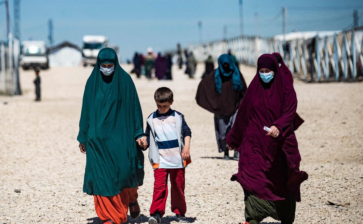 Dos mujeres, junto a un menor en el campamento de Al Hol, en Siria. AFP / ATLAS