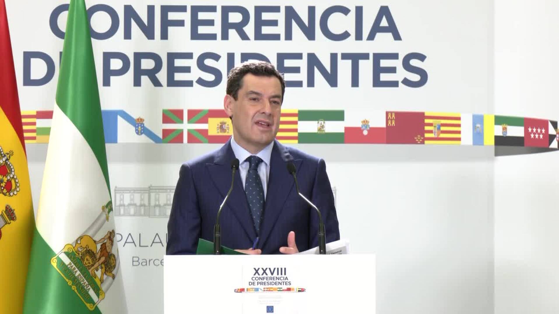 El presidente de la Junta de Andalucía, Juanma Moreno (PP-A), ha deslizado este viernes que el presidente del Gobierno, Pedro Sánchez, ha sido "promotor" de la "polémica" generada en torno al uso de lenguas cooficiales --euskera, catalán y gallego-- y de pinganillos durante la Conferencia de Presidentes celebrada este viernes en Barcelona, y ha rehusado valorar la decisión de su homóloga madrileña, Isabel Díaz Ayuso, de abandonar la reunión mientras intervenían el lehendakari vasco y el presidente de la Generalitat, Imanol Pradales y Salvador Illa, en euskera y catalán, respectivamente."No soy ayusólogo", ha respondido Juanma Moreno al ser preguntado por ese plante de la presidenta madrileña en la rueda de prensa posterior a la Conferencia de Presidentes, en la que el dirigente andaluz ha añadido que no podía "interpretar las decisiones ni las posiciones" de su compañera de partido.