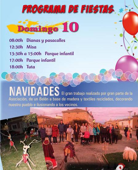 El sábado, 9 de septiembre, está previsto, entre otras actividades, un concurso de repostería, diferentes actos deportivos, y sobre las 21:00 el popular desfile de disfraces en la plaza. Media hora después dará comienzo el baile -cuando termine se entregarán los premios-, y sobre la una de la madrugada arrancará la verbena -al descanso habrá bingo-. Una vez terminada se hará entrega de una gran chocolatada organizada por David y Paula.