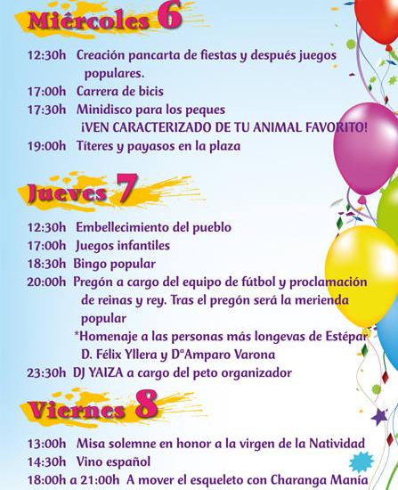 Los días más intensos en cuanto a festejos se refiere son el jueves, viernes y sábado. El mismo jueves, los actos festivos comenzarán a las 12:30 con el embellecimiento del pueblo, y después de los juegos infantiles (17:00) y el bingo popular (18:30) llegará «uno de los momentos más esperados por los vecinos del pueblo: el pregón a cargo del equipo de fútbol, la proclamación de reinas y el rey, y la merienda popular. Además, como novedad este año, realizaremos un homenaje a las personas más longevas de Estépar, Félix Yllera y Amparo Varona», explica el alcalde, Jaime Martínez González.