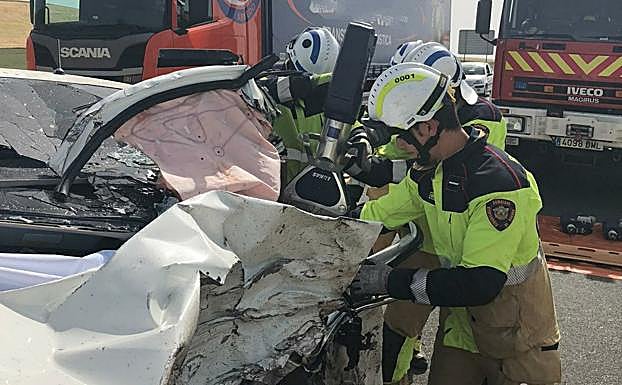 Una vez alertado al 1-1-2, hasta el lugar de los hechos se han trasladado sendas dotaciones de la Guardia Civil de Tráfico y de los Bomberos de Burgos, que han tenido que esforzarse para excarcelar los dos cuerpos. También se han trasladado hasta allí varios facultativos sanitarios del centro de salud de Belorado, acompañados por una ambulancia de soporte vital básico y un helicóptero medicalizado.