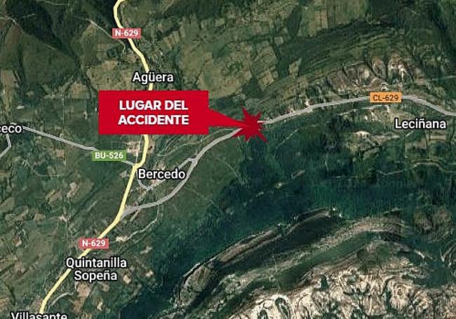 Según explican fuentes del Servicio de Emergencias 1-1-2, el siniestro ha tenido lugar al filo de las 17:30 horas en el kilómetro 85 de la CL-629, a la altura del término municipal de Merindad de Montija, entre las localidades de Bercedo y Leciñana.