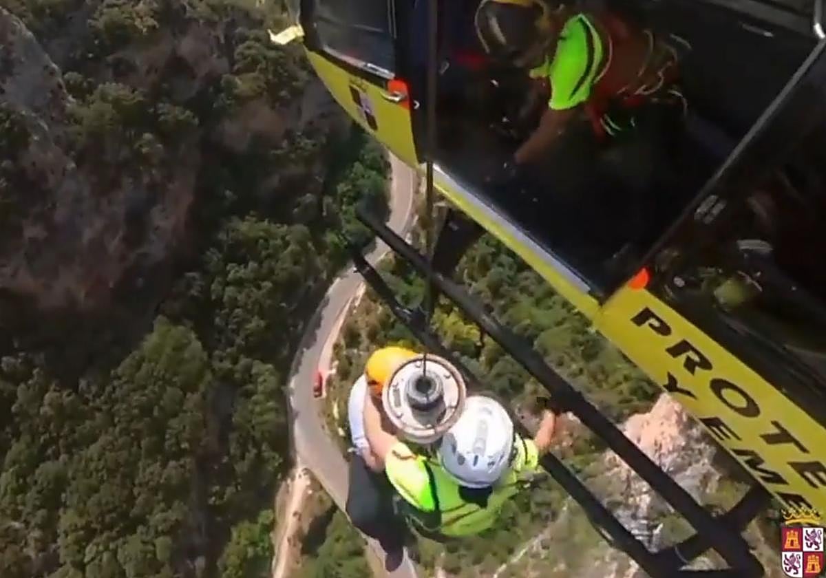 Una vez asegurada, la mujer fue colocada en un triángulo de evacuación e izada al helicóptero. Posteriormente, se repitió la maniobra para evacuar al acompañante. Con ambos ya a bordo, la aeronave los trasladó a una explanada en Tobera, donde tenían estacionado su vehículo.