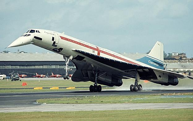 Este Concorde fue fotografiado en Farnborough (Reino Unido) en 1974. Podía llegar a los destinos en la mitad de tiempo que un avión comercial. Su baja demanda tras el accidente de julio de 2000 obligó Air France y British Airway a su retirada tres años después. Este aparato se halla ahora en el museo de Duxford.