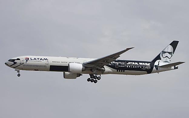 Este Boeing 777, cuyo nombre hace alusión a las tropas de asalto de 'Star Wars', pertenece a la flota de Latam Brasil y va decorado con un motivo basado en la célebre saga. El diseño fue realizado por el equipo creativo de Disney junto con Lucasfilm. Para plasmar la ilustración en el fuselaje se utilizaron 2.500 litros de pintura.