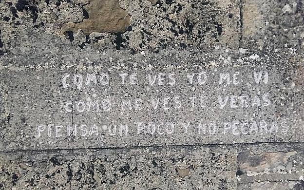 BC «Como te ves yo me vi como me ves te verás piensa un poco y no pecarás». Las paredes del cementerio de Peñacoba tienen mucho hueco para frases trascendentes y también han encontrado espacio para lanzar un consejo a los vivos.