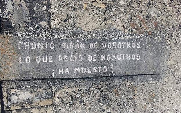 BC «Pronto dirán de vosotros lo que decír de nosotros ¡ha muerto!» advierte también la pared del cementerio de Peñacoba, pedanía de Santo Domingo de Silos.