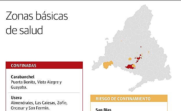 Y en ese informe aparecen serias candidatas. Son las 16 de áreas sanitarias que superan el listón del millar de contagios fijado por la Dirección General de Salud Pública de la Comunidad de Madrid pero que todavía no han sido confinadas. Algunas de estas zonas ya estaban por encima de los límites la pasada semana pero se libraron por sus dificultades de aislamiento u otros factores, pero la mayoría de estas áreas han entrado en esta temida 'lista negra' en las últimas horas. Las 16 zonas en el punto de mira para acompañar a las 37 ya aisladas son 9 de Madrid capital y 7 de otros municipios.