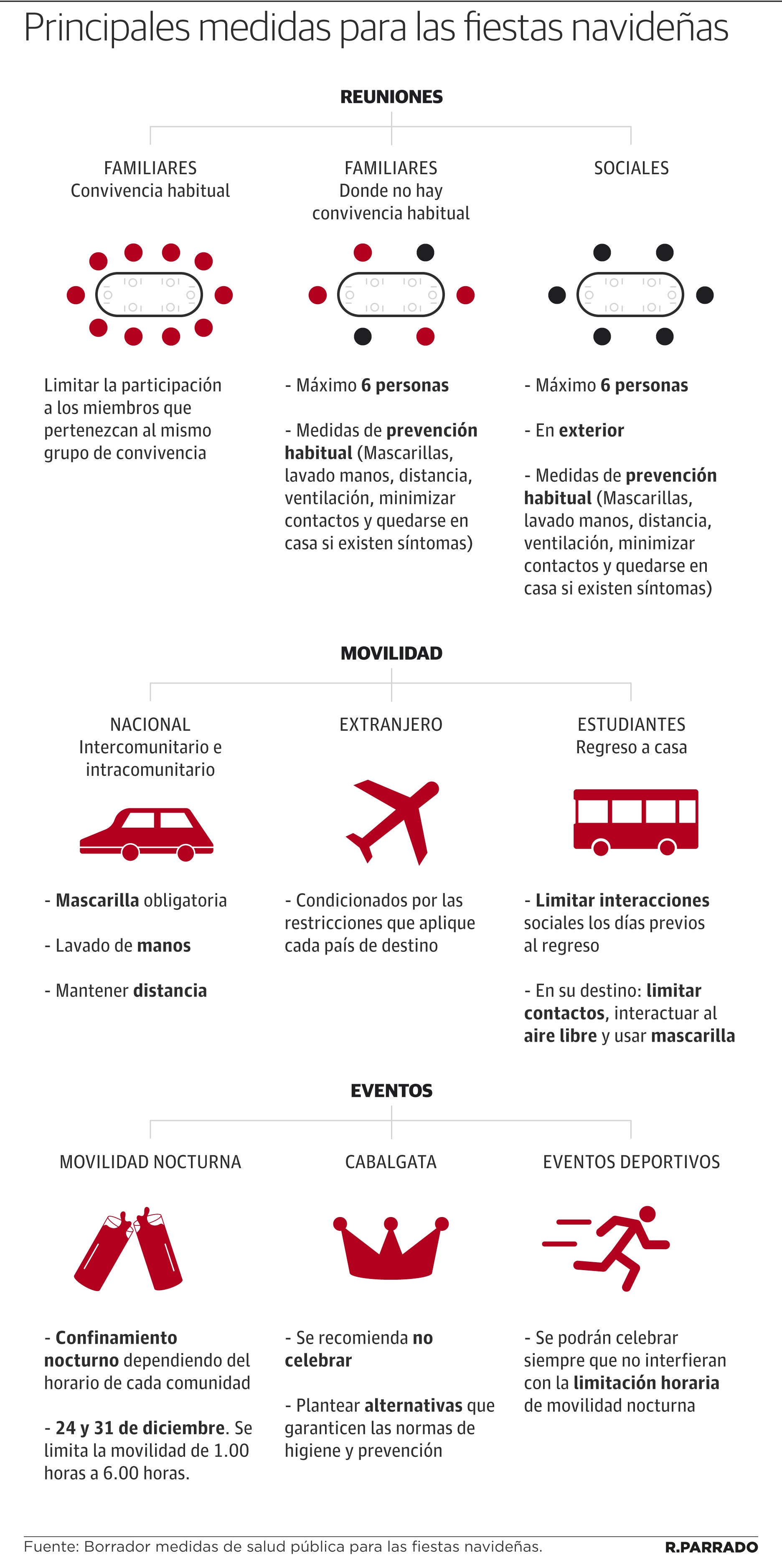 El toque de queda comenzará a la 1.00 horas | Las medidas se reflejan en el borrador 'Propuestas de medidas de salud pública frente a la covid-19 para la celebración de las fiestas navideñas'