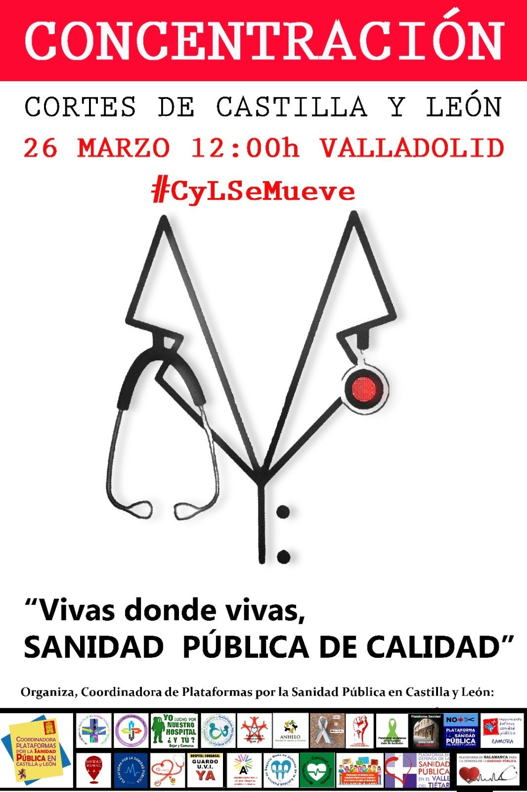 Movimientos sociales y vecinales de Castilla y León convocan una concentración este sábado, 26 de marzo, ante las Cortes para reclamar a los partidos que cumplan con sus compromisos en materia de sanidad