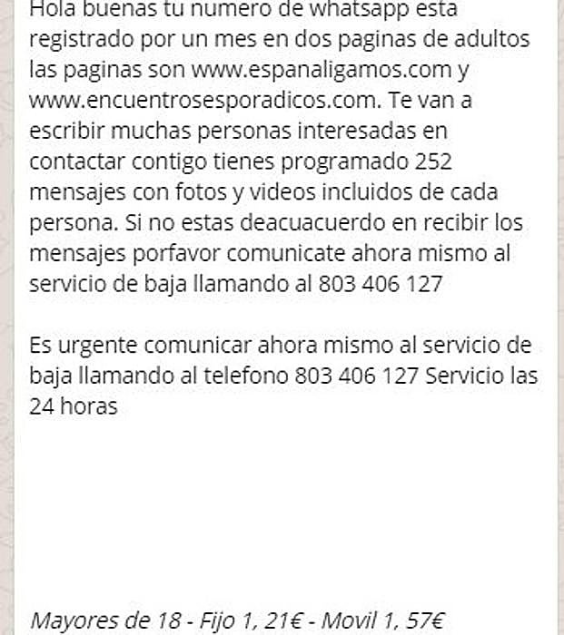 Por ello, aprovechando el posible miedo de sus víctimas, la estafa hace que los que reciben el mensaje puedan tener la duda de si efectivamente sus datos están en un portal de contenido para mayores de 18 años. De modo que invitan a llamar al teléfono 803406127 para poder darnos de baja. Algo que no solo es falso sino que conlleva gastar mucho dinero en nuestra factura telefónica.