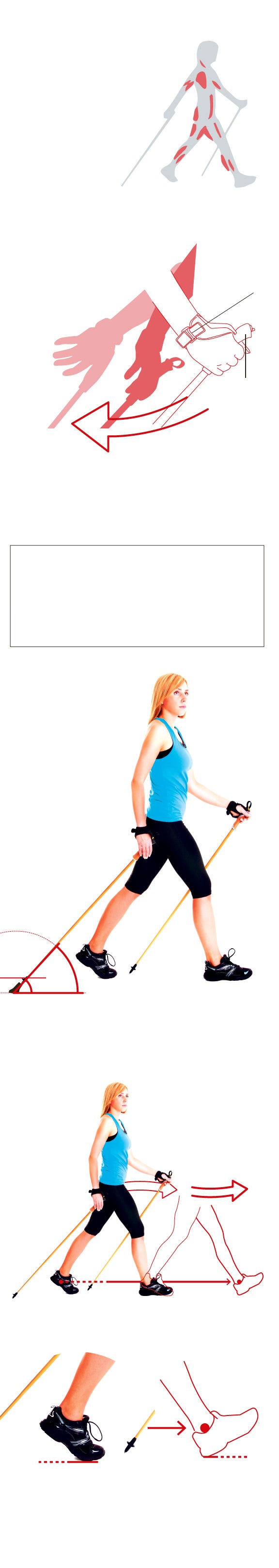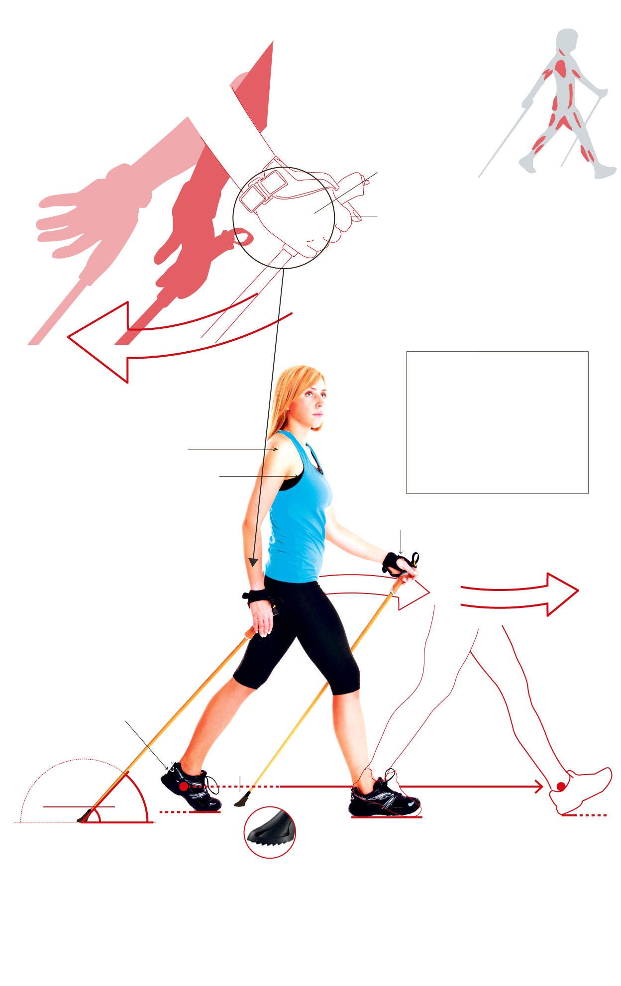 • Movimiento: Hombros bajos y relajados, cuerpo erguido sin que se incline hacia delante. Los pasos son más largos que en la caminata normal: se despega del suelo con el apoyo en los dedos del pie y se aterriza con el talón. Consulte la técnica en la web del periódico:
